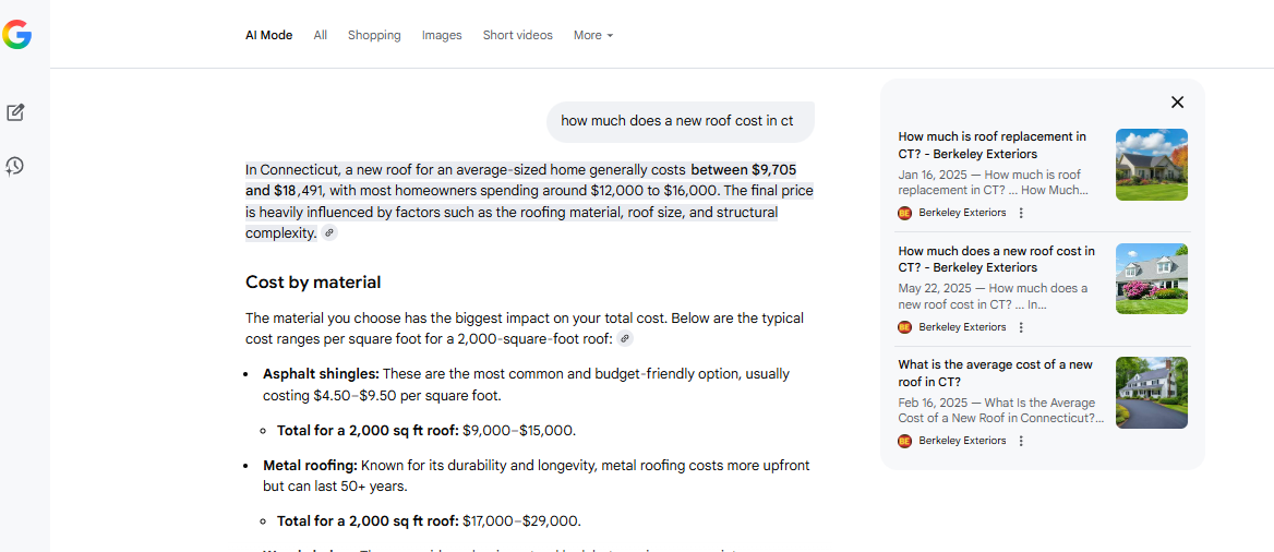 Look at how AI Overview changed our client Berkeley Exteriors website traffic since the May Google AI Update